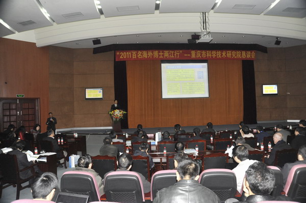 12月16日,由市委人才办、市科协、市人力社保局、市外办与我院联合举办的“2011百名海外博士两江行”重科院恳谈对接会在院学术报告厅隆重举行。此次恳谈对接会是“2011百名海外博士两江行”重大活动之一,共邀请来自美国麻省理工、英国剑桥、美国IT金融集团、IBM研究院总部等高校、企业的100余名博士参加会议。院党委书记皮晓青,副院长贾渝跃、刘斌,纪委书记李雷霆,以及院组织人事处、科研管理处、新材料中心等相关处室、中心和院所的负责同志接待了来宾。海外博士一行实地考察和参观了院光机所、硅酸盐所、自动化所、技术评估与转移服务中心及科技成果展示厅,并参加了恳谈对接会。