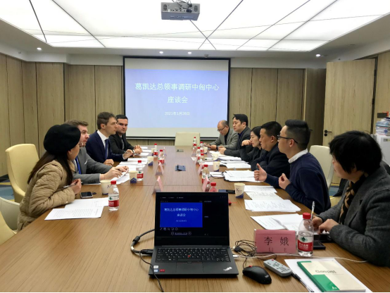 会见会后,葛凯达总领事一行在市科技局科技合作处和院高创中心负责人陪同下,对中匈中心重科智谷“线下服务基地”进行了现场调研,三方就“成渝地区-匈牙利创新合作论坛”筹备方案和首届“一带一路”科技创新合作大会等相关事宜进行了深入的座谈交流。
