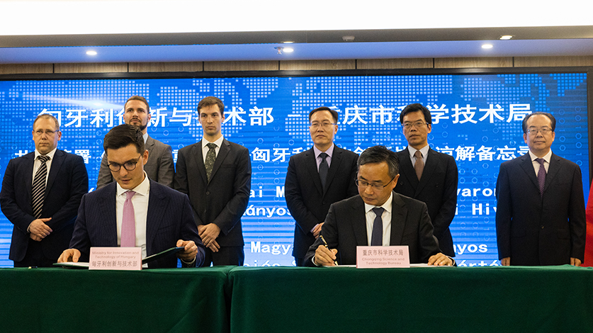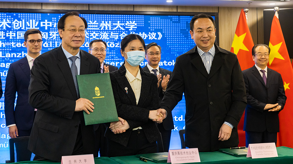 通过院中匈中心前期的筹备和对接,大会期间,在匈牙利驻华大使白思谛、匈牙利驻重庆总领事馆总领事葛凯达、匈牙利驻华大使馆特命全权公使戴彼得、匈牙利外经贸部科技参赞鲍洛安,重庆市政府副市长蔡允革、重庆市科技局党委书记局长许洪斌、四川省科技厅党委书记副厅长陈学华和院党委书记何平的见证下,重庆市科学技术局与匈牙利创新与技术部签署了《中国(重庆)—匈牙利科技创新战略谅解备忘录》,院高创中心(中匈中心)分别与兰州大学,贵州省技术转移中心签订《协同推进中国-匈牙利技术交流与合作》协议,与匈牙利匈中双语学校和重庆两江新区星湖学校签署《协同推进中国—匈牙利科技教育交流与合作协议》。同时,还集中组织了5项成渝地区和匈牙利的创新合作项目签约和中匈果酒白兰地(帕林卡)研究室揭牌,以“线上+线下”的方式展示推介了27项成渝地区和匈牙利的科技成果项目,11项推介成果项目进行了现场对接,其中4项初步达成合作意向。