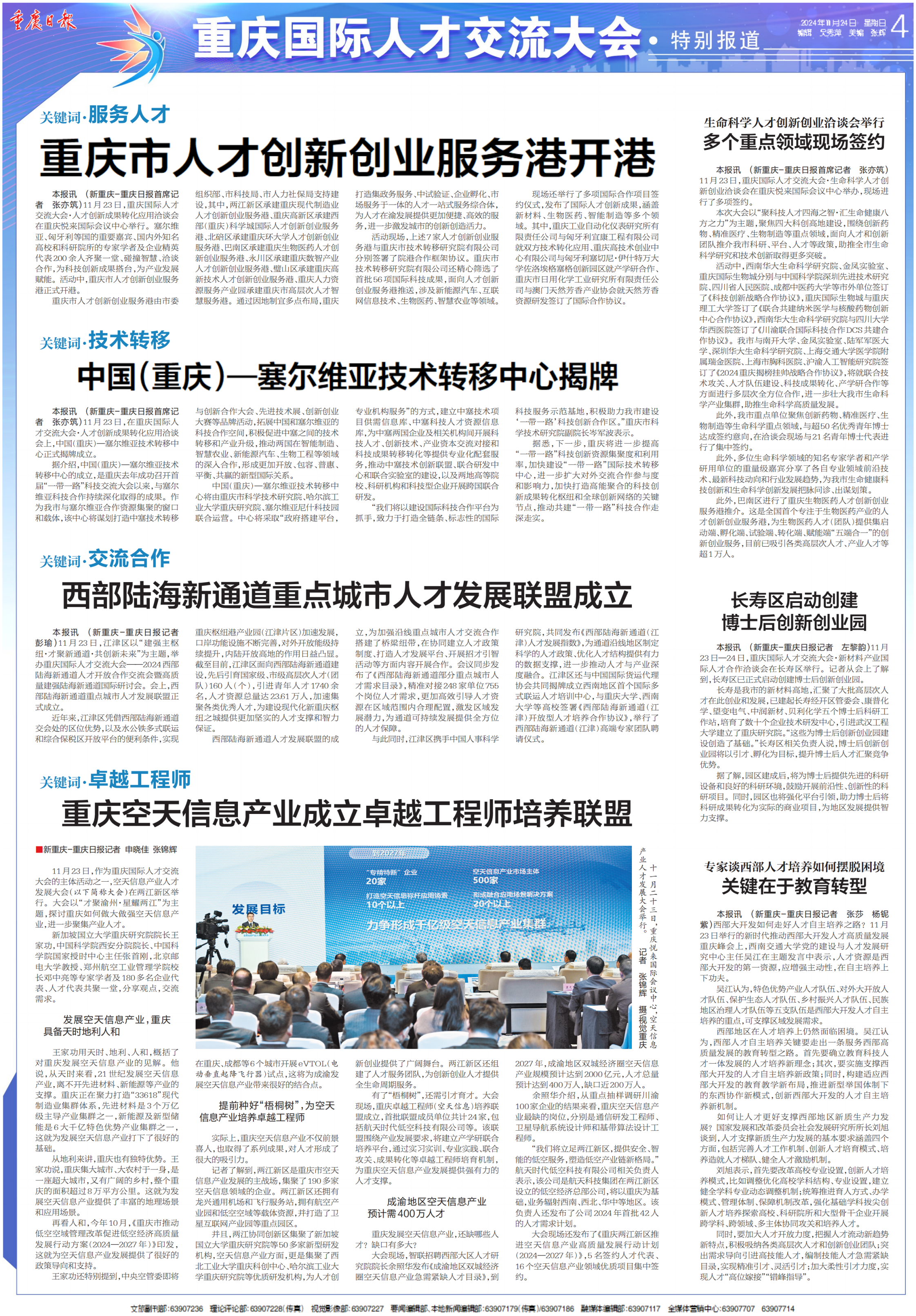11月23日,在重庆国际人才交流大会·人才创新成果转化应用洽谈会上,中国(重庆)—塞尔维亚技术转移中心正式揭牌成立。