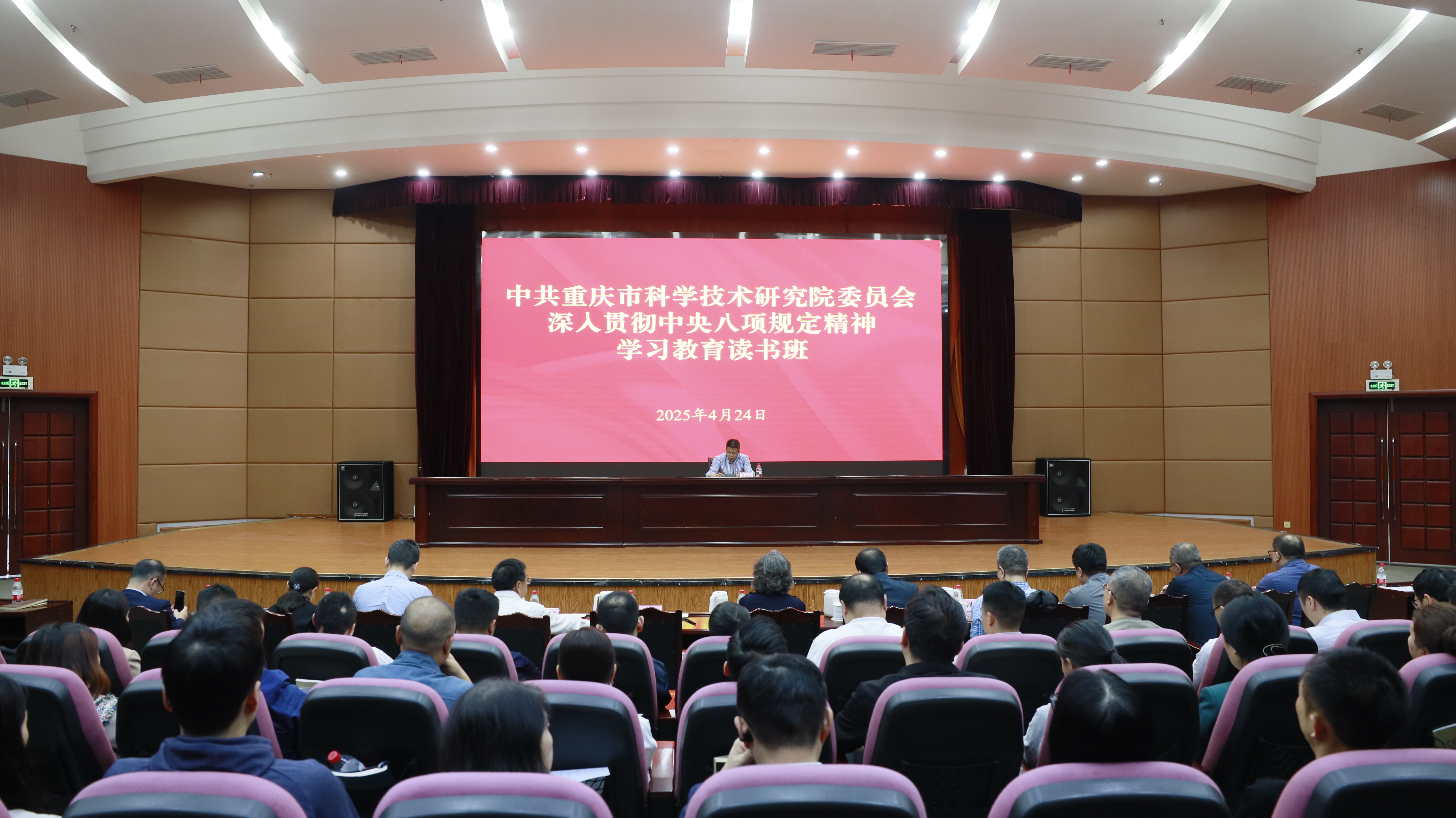 4月23日至24日,我院举办深入贯彻中央八项规定精神学习教育读书班。院领导、综合部门、研究中心负责人及党员、院属企事业单位领导班子成员和基层党支部书记代表、年轻干部及关键岗位人员共计94人参加学习。