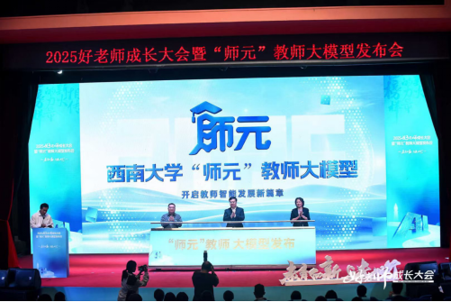2025年10月18日,“师元”教师大模型发布会在西南大学隆重召开。会上,市委宣传部副部长马然希、西南大学校长王进军、市科技研究院党委书记雷虹共同启动“师元”教师大模型发布仪式。来自全国各省、市、自治区的师范类高校及全国各地中小学教育工作者、教育领域专家学者以及市科技研究院研发团队共计600余人参加发布会。