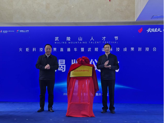 当天下午,以“武陵星火·科创新程”为主题的“火炬科技成果直通车暨武陵山科技成果对接会”在武陵山科创中心举行。雷虹书记在会上致辞,滕旭荣副区长与岑军波副院长共同为武陵山科创中心揭牌。我院新材料、生物医药、绿色低碳等领域的12名博士服务团成员首批入驻,将围绕地方产业技术需求开展产学研融通创新。