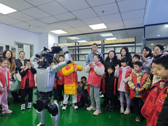 在智能机器人研究中心,孩子们通过现场观摩与互动体验,初步掌握了机器人的工作原理与人工智能的基本逻辑,有效激发了科学探索兴趣与求知欲。
